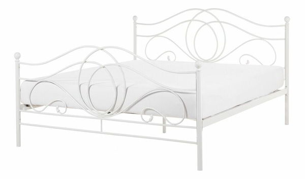 Táto posteľ vyniká svojím elegantným a romantickým vzhľadom. Kovový rám v sofistikovanej bielej farbe s práškovou povrchovou úpravou je odolný a nenáročný na údržbu. Elegantná kovová konštrukcia s dekoratívnym čelom a rámom pri nohách vnesie romantickú atmosféru do akejkoľvek spálne zariadenej v modernom, retro a škandinávskom štýle.
