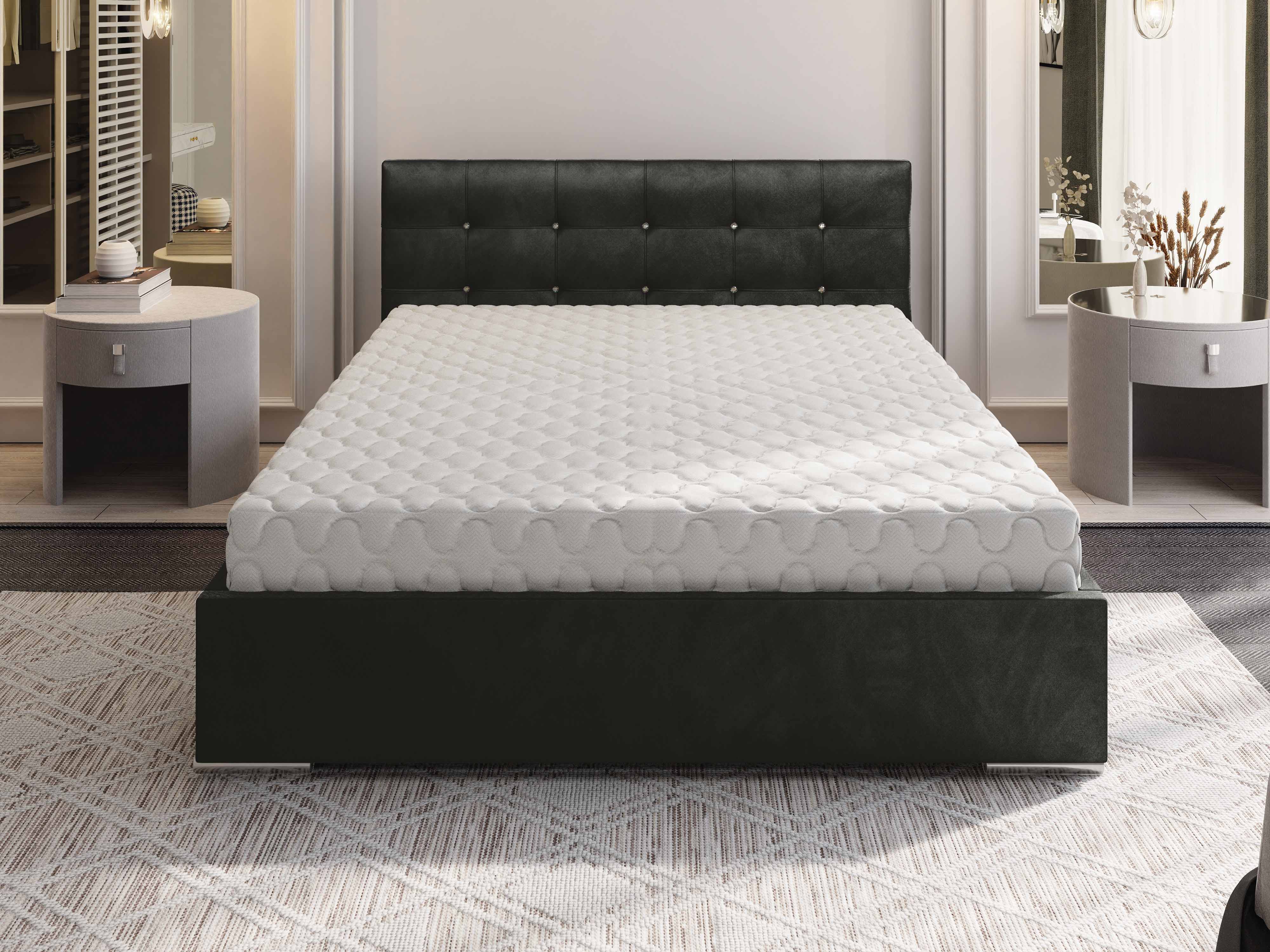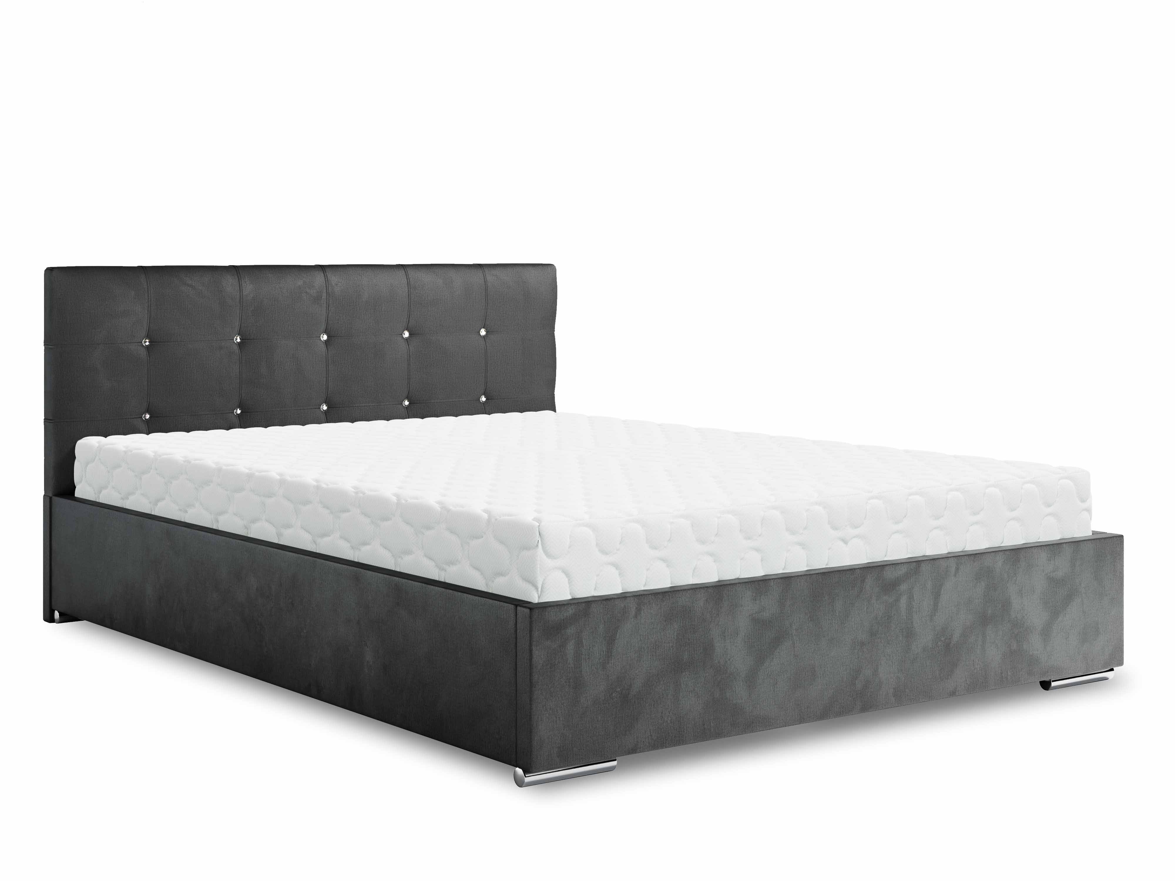 Manželská posteľ 160 cm Lonnie s tmavosivým plastickým riešením čela a zapošitými gombíkmi má rošt aj úložný priestor na posteľnú bielizeň. Ponúka sa v niekoľkých farebných aj rozmerových variantoch a má konštrukciu z kombinácie drevotriesky a dreva. Výška čela postele je 115 cm, vpredu 65 cm a výška bočnice je 35 cm. Maximálne zaťaženie je 240 kg a posteľ je dodávaná s roštom. Matrac si môžete vybrať a priobjednať z nášho internetového obchodu.