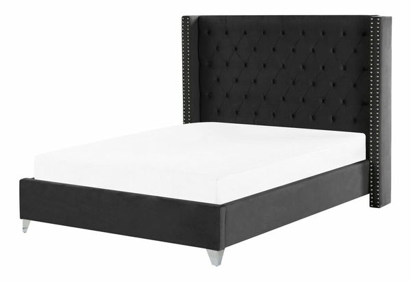 Táto čalúnená posteľ vnesie do vašej spálne eleganciu a štýl. Je dokonalým spojením vintage dizajnu a moderného štýlu, vďaka čomu je dobrou voľbou do spální v súčasnom alebo retro štýle. Má pevnú drevenú konštrukciu a čalúnenie z polyesterového zamatu s klasickým prešívaním s gombíkmi a kovovým lemovaním. Celý dizajn dopĺňajú strieborné nohy.