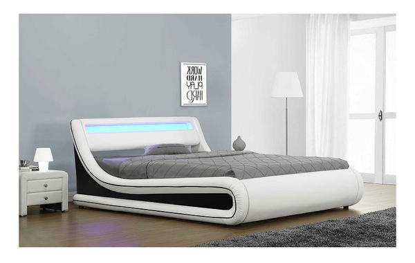 Dizajnovo moderná manželská posteľ s výklopným roštom a úložným priestorom je zároveň pekná aj praktická, RGB LED osvetlenie dodáva priestoru harmóniu a pohodu. Čalúnená je v zaujímavej čierno-bielej ekokoži.