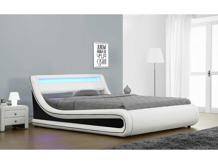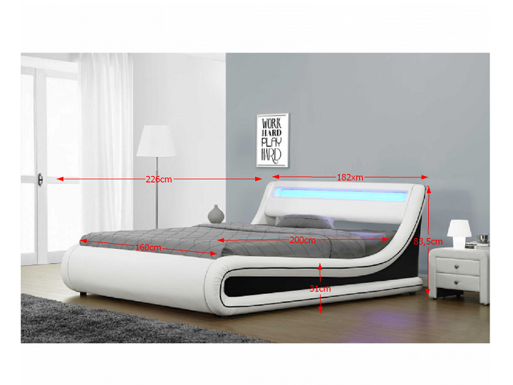 Dizajnovo moderná manželská posteľ s výklopným roštom a úložným priestorom je zároveň pekná aj praktická, RGB LED osvetlenie dodáva priestoru harmóniu a pohodu. Čalúnená je v zaujímavej čierno-bielej ekokoži.