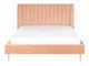 Elegantná posteľ v modernom štýle s vysokým a hrubo vystužený operadlom. Klasický obdĺžnikový tvar postele dopĺňa prešívané čelo, ktoré posteli dodáva moderný vzhľad. Nohy sú perfektne vyvážené a neodvádzajú pozornosť od elegantného dizajnu, ale zaisťujú silnú, pevnú a odolnú konštrukciu. Celá posteľ je čalúnená zamatom v broskyňovom odtieni ružovej, ktorý jej dodáva sofistikovaný vzhľad.