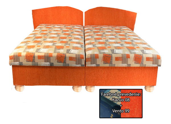 Klasická čalúnená manželská posteľ stojaca na výrazných guľatých nohách. Praktický úložný priestor šetrí miesto v spálni, stačí jednoducho vyklopiť matrace do strany. Korpus manželskej postele je z pevnej drevotrieskovej dosky a úložný priestor je odvetraný a v strede spevnený. Čalúnené matrace sú nevyberateľné a s korpusom postele sú spojené kovaním, ktoré umožňuje pohodlný prístup k úložnému priestoru. Posteľ je dodávaná s pružinovým matracom s nosnosťou 110 kg.