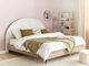 Ak hľadáte štýlovú a pohodlnú posteľ, tento kúsok je pre vás ideálnou voľbou. Vďaka odolnému rámu z MDF, čiernym kovovým nohám a pevnému drevenému roštu bude vyzerať skvele dlhé roky. Čalúnené polkruhové čelo postele umocňuje jej elegantný a zároveň útulný dizajn, ktorý sa hodí do spální ladených v modernom i tradičnom štýle.