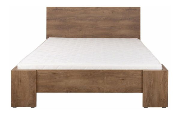 Manželská posteľ jednoduchého dizajnu, ktorá poteší milovníkov prírodného a rustikálneho dizajnu. Posteľ má širšie nohy, čelo postele sa nachádza pri hlave a je dodávaná s latkovým roštom, ale bez matraca. Ten si môžete vybrať a priobjednať z ponuky nášho internetového obchodu. Farebné prevedenie postele je dub lefkas.