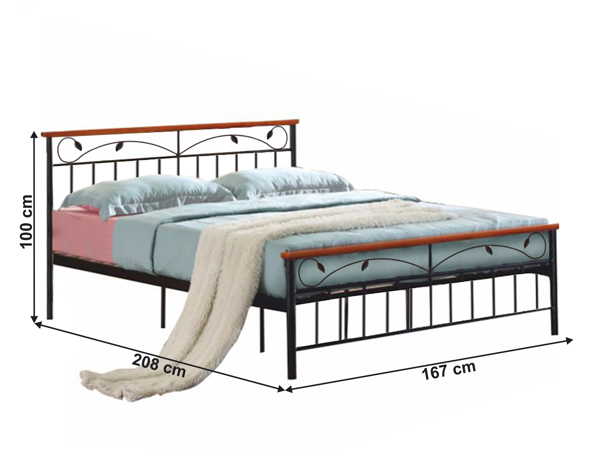 Manželská posteľ 160 cm Myles 160 (čierna + čerešňa) je perfektná voľba pre pohodlie a štýl v spálni. S výškou 100 cm, šírkou 167 cm a hĺbkou 208 cm, táto posteľ ponúka rozmery, ktoré vyhovujú vašim potrebám. Je vyrobená z pevného kovového tela v čiernej farbe, ktoré dodáva posteli život a eleganciu. Krásne zdobená kreatívnymi tvarmi s lístkami, táto posteľ kombinuje prírodný a kovový materiál v dokonalom súlade. Jej mohutné telo je porovnateľné s máloktorým konkurentom. Posteľ je dodávaná s lamelovým roštom, aby vám poskytla maximálny komfort pri spánku. Užite si pohodlie na prvom mieste s touto nádhernou posteľou Myles.
