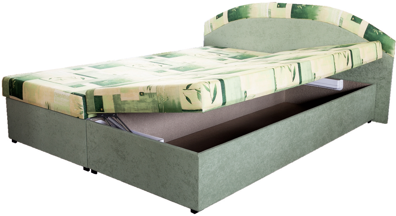 Posteľ má úložný priestor, matrace sa vyklápajú zboku.