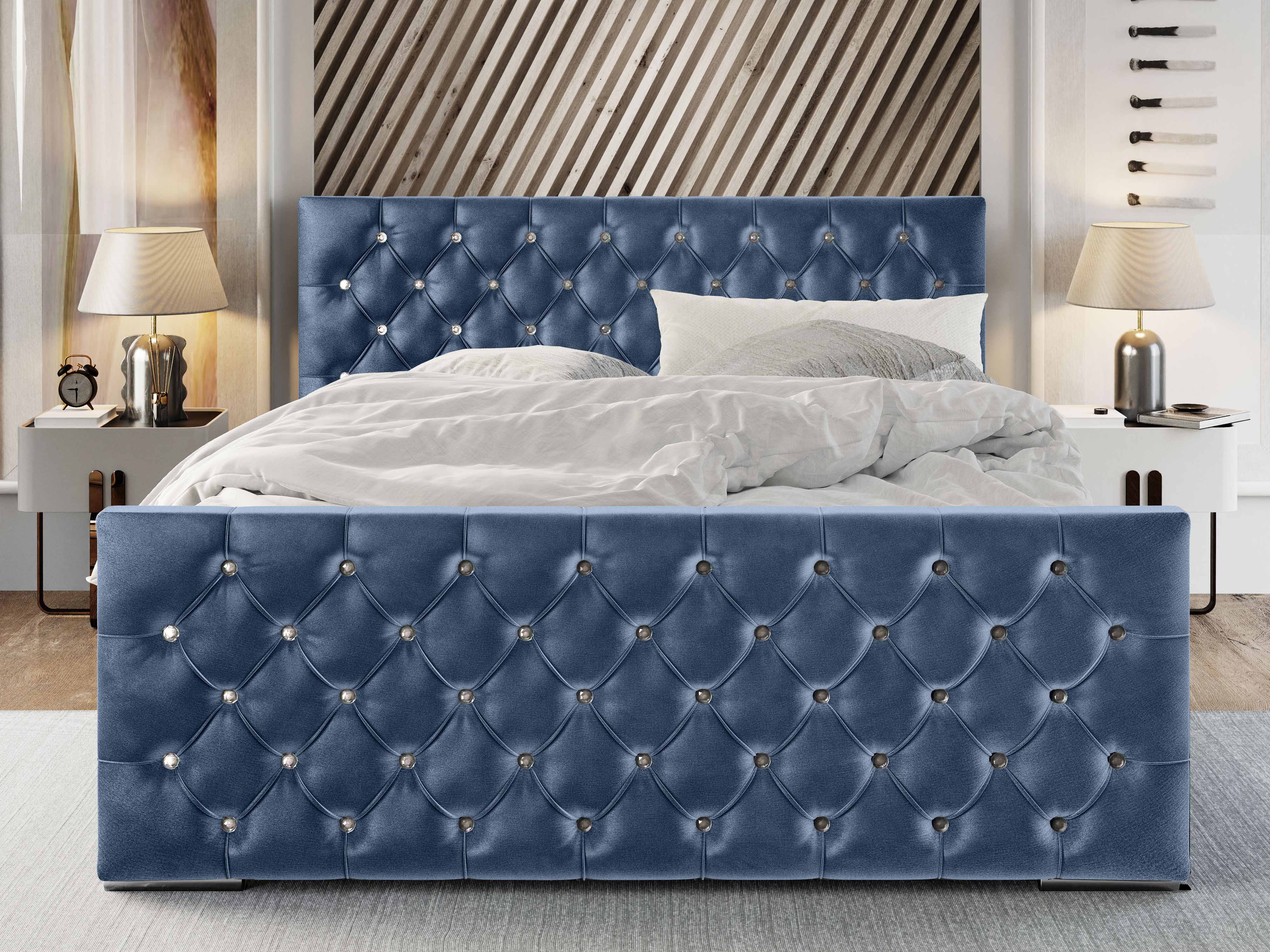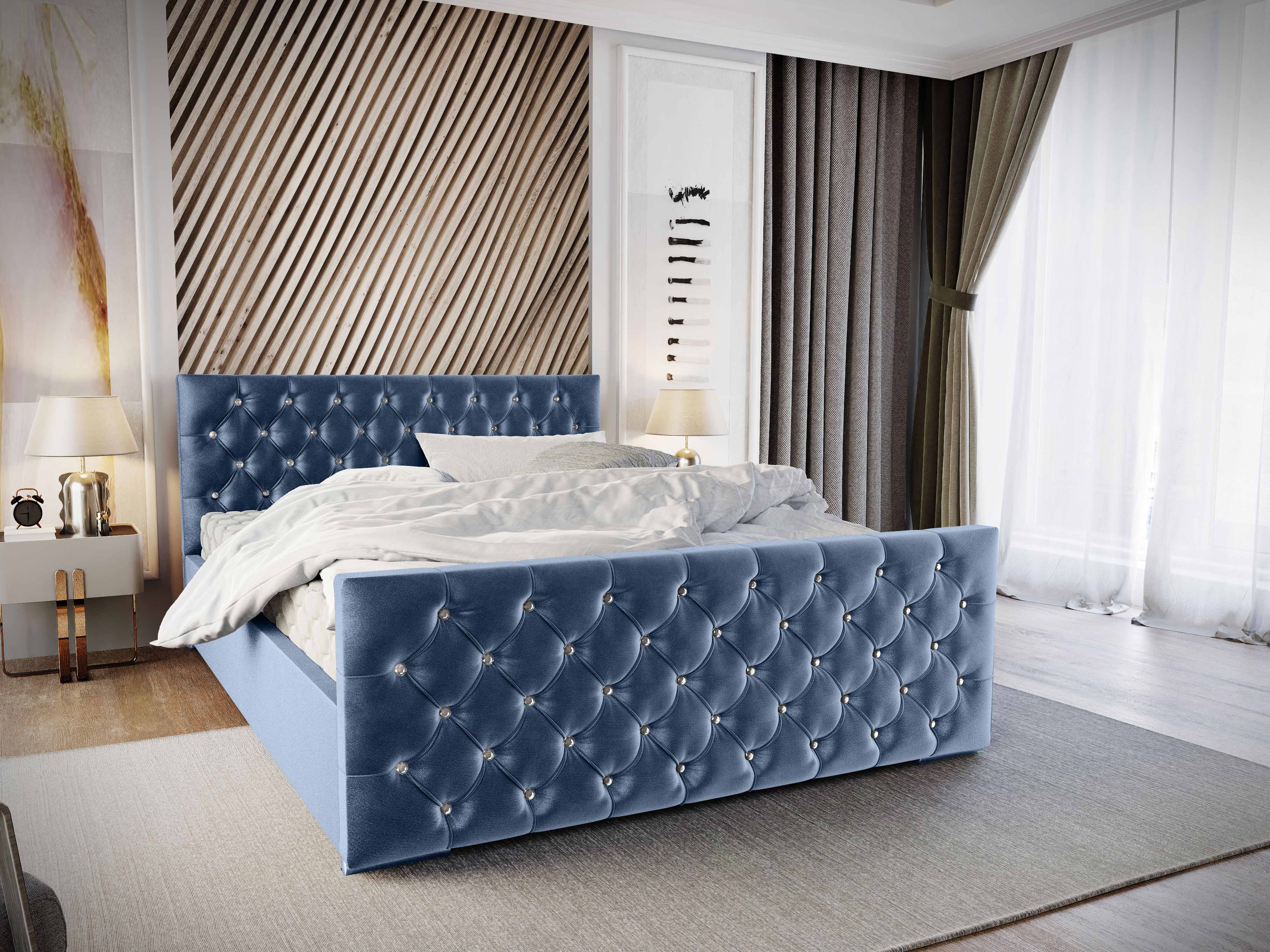Manželská posteľ 160 cm Quintin (svetlomodrá) s roštom a úložným priestorom je elegantná posteľ s všitými gombíkmi, roštom a úložným priestorom na posteľnú bielizeň. Ponúka sa v niekoľkých farebných aj rozmerových variantoch. Tkanina Monolith 70 je testovaná na odolnosť. Konštrukcia je vyrobená z kombinácie drevotriesky a dreva. Posteľ je dodávaná bez matraca, no matrac si môžete vybrať a priobjednať z nášho internetového obchodu. Výška čela postele je 115 cm, výška bočníc 35 cm, dĺžka 210 cm a maximálne zaťaženie je 240 kg. Posteľ je dodávaná v troch balíkoch.
