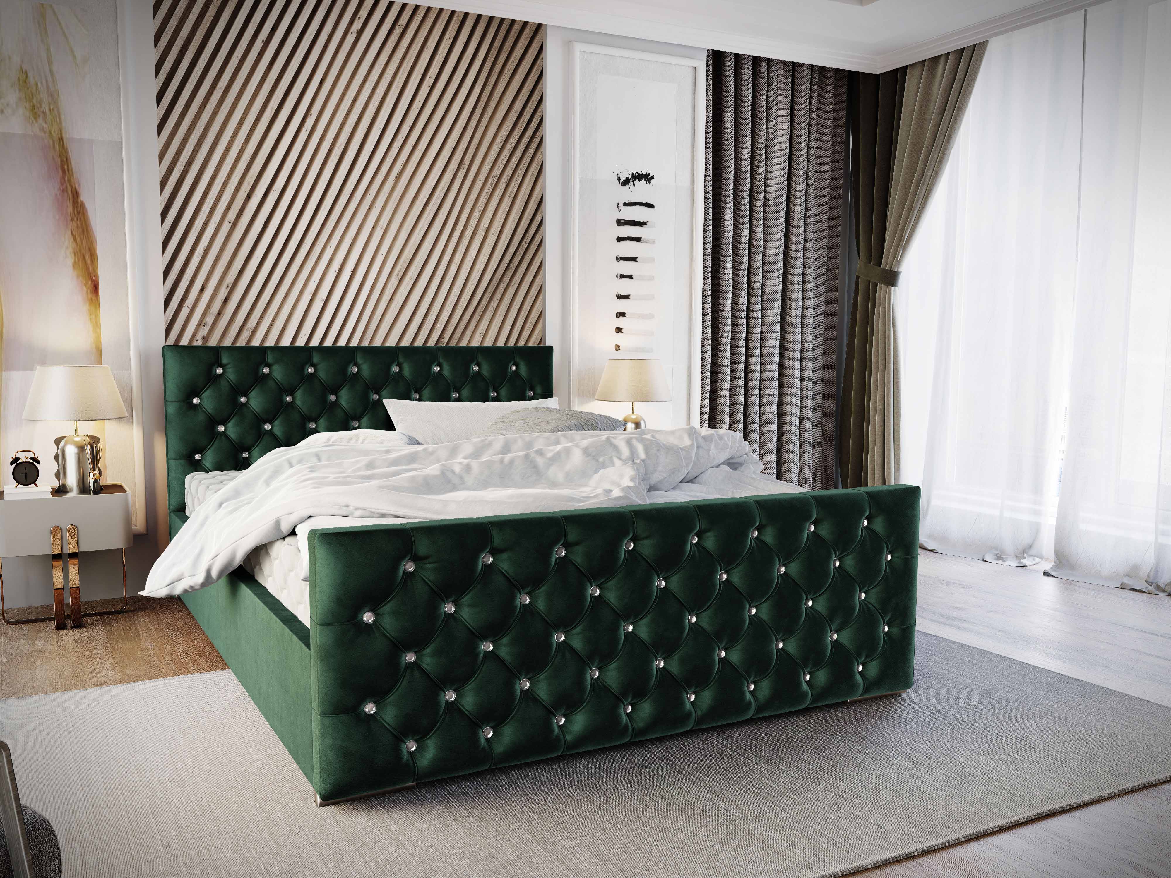 Manželská posteľ 160 cm Quintin (tmavozelená) (s roštom a úložným priestorom)