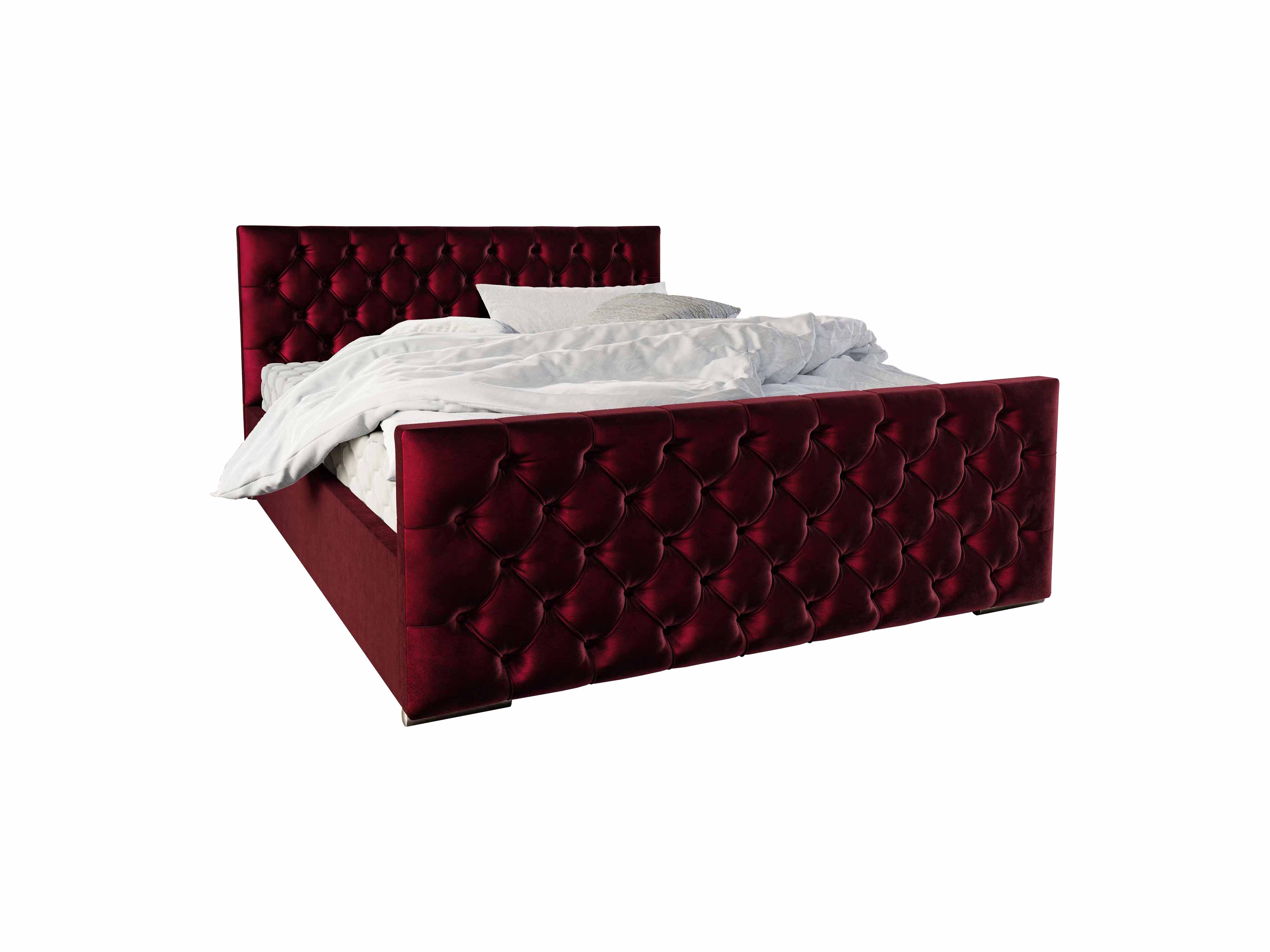 Manželská posteľ 160 cm Velva (bordová) s roštom a úložným priestorom je elegantná posteľ s výškou čela 115 cm, dĺžkou 210 cm a tkaninou Monolith 59. Posteľ obsahuje rošt aj úložný priestor na posteľnú bielizeň. Konštrukcia je z drevotriesky a dreva, a maximálne zaťaženie je 240 kg. Matrac nie je súčasťou produktu, ale môžete si ho vybrať a priobjednať z internetového obchodu, vhodný matrac má výšku 10 cm a pružinu bonell.