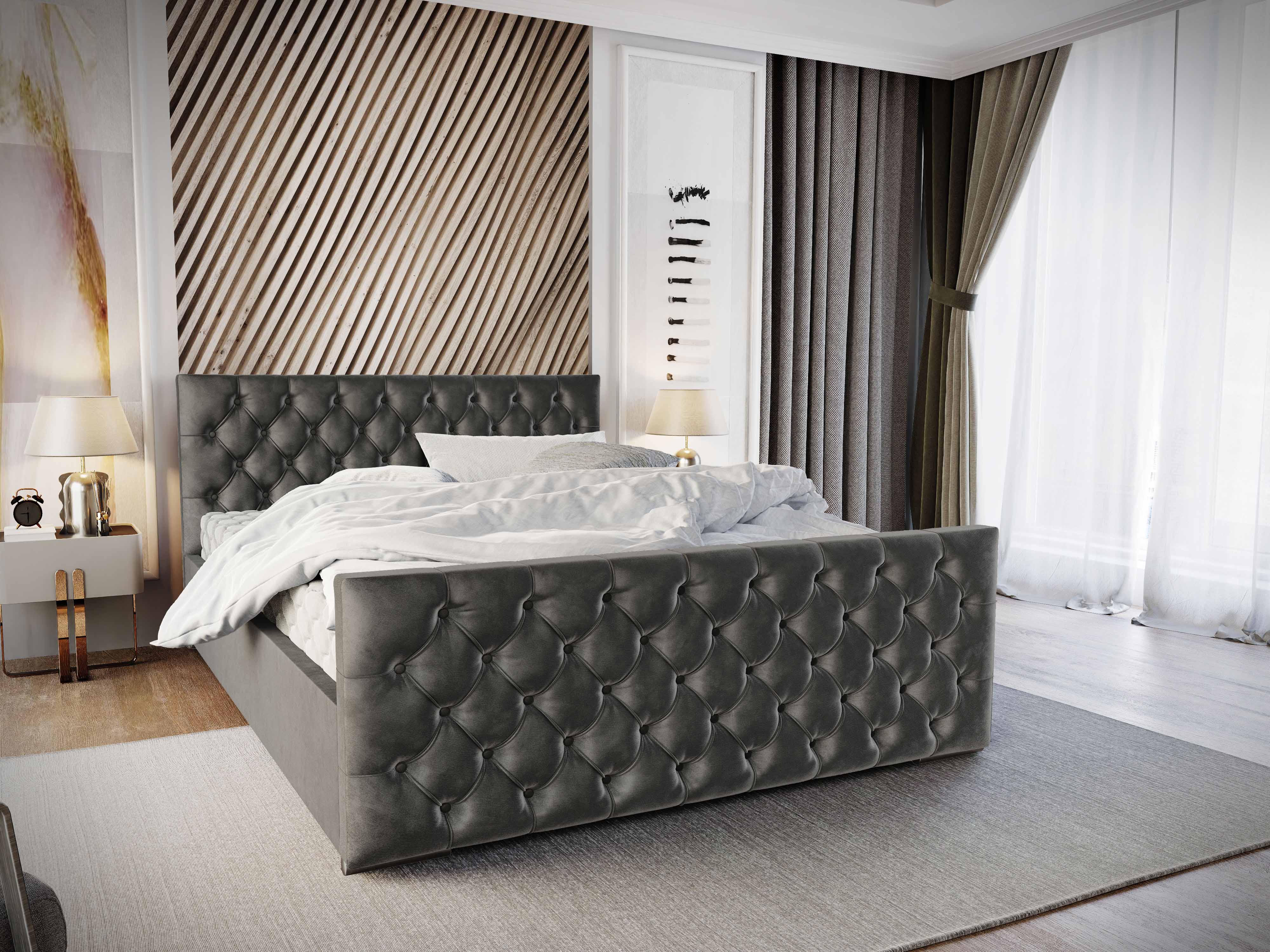 Manželská posteľ 160 cm Velva (tmavosivá) je elegantná posteľ s gombíkmi v tkanine na čele a prednej časti postele. Vnútri postele je rošt a úložný priestor na posteľnú bielizeň. Rám postele je vyrobený z kombinácie drevotriesky a dreva. Posteľ je dodávaná s úložným priestorom a roštom, no matrac si môžete vybrať a priobjednať z nášho internetového obchodu. Posteľ má rozmer 160x200 cm, výšku čela 115 cm a dĺžku 210 cm. Maximálne zaťaženie je 240 kg.