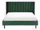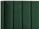 Elegantná posteľ s moderným dizajnom a vysokým operadlom. Obdĺžnikový tvar postele môže na prvý pohľad pôsobiť klasickým dojmom, no vďaka zvislému prešívaniu na čele vyzerá moderne a štýlovo. Celá posteľ je čalúnená zamatovou látkou v tmavozelenej farbe, ktorá jej dodáva sofistikovaný vzhľad. Malé nohy sú síce nenápadné, ale zaručujú stabilitu a pevnosť celej konštrukcie.