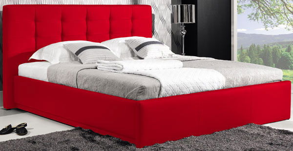 Moderná manželská posteľ svojim dizajnom spraví z Vašej spálne luxusný priestor. Je vyrobená z kvalitnej červenej ekokože. Na čelách je vzorovane prešitá. Plocha lôžka je 180 x 200 cm.