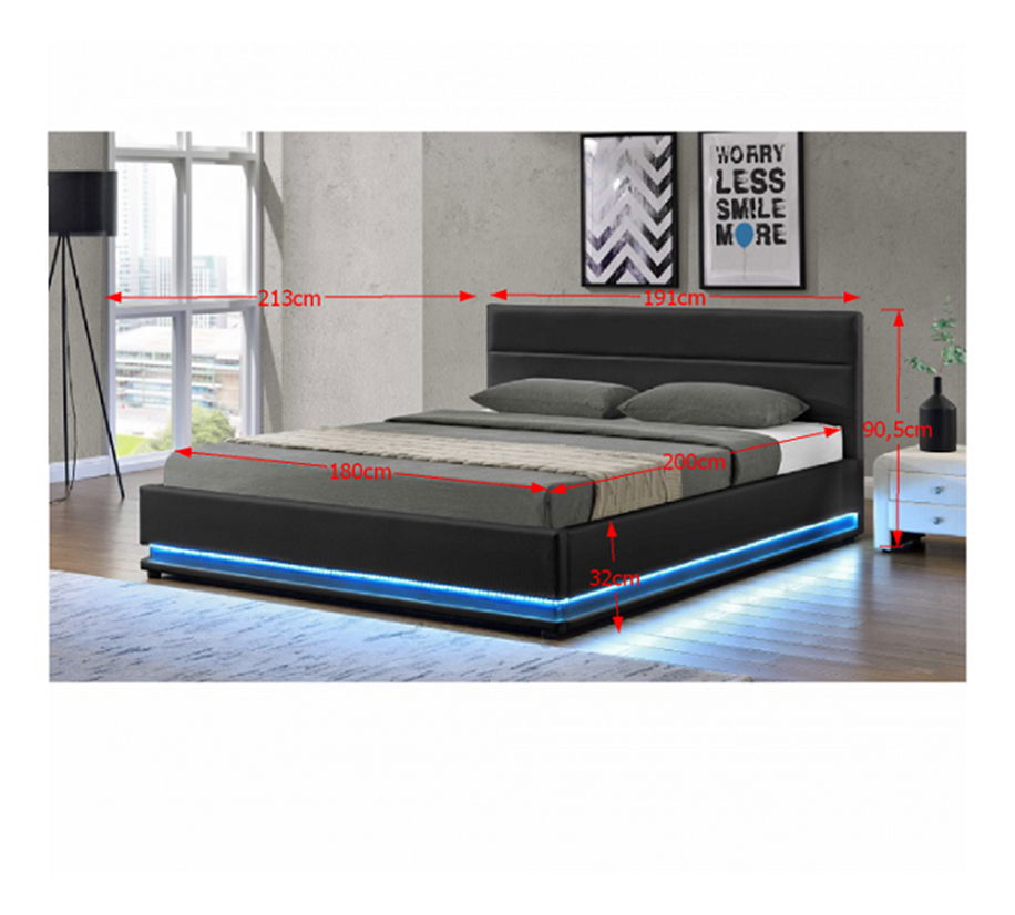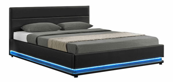 Manželská posteľ Baella je čierna posteľ s LED podsvietením okolo rámu, vybavená výklopným lamelovým roštom a úložným priestorom. Celá postel je čalúnená ekokožou, ktorá je odolná voči oderu a jednoduchá na údržbu. Posteľ je dodávaná v demonte a ponúka plochu na spanie o veľkosti 183 x 200 cm s výškou po rošte 32 cm. Odporúčame zakúpiť atypický matrac s rozmernými parametrami 183 x 200 cm pre najlepší pohodlný spánok.