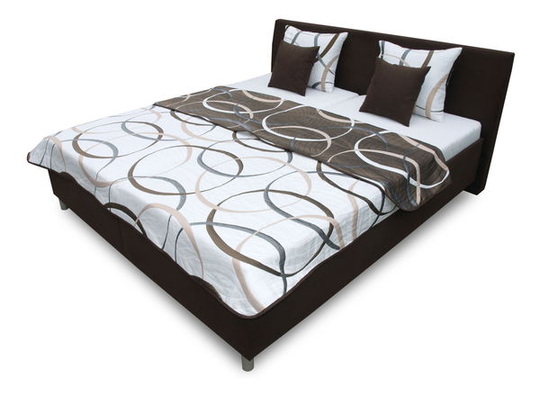 Manželská posteľ s polohovaním pod hlavou a nohami. Je určená pre voľne vložené matrace. Obsahuje kvalitné polohovateľné lamelové rošty s 28 lamelami, pneumatickým zdvíhaním a nastavením tuhosti. Pod roštami sa nachádza úložný priestor. Posteľ stojí na kovových nožičkách. Prehoz je obojstranný a tak si môžete zvoliť tmavšiu alebo svetlejšiu stranu.