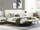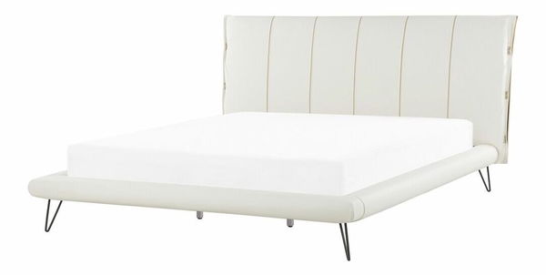 Táto moderná posteľ so širokým čelom je ideálnou voľbou pre tých, ktorí chcú pohodlne spať a relaxovať pri čítaní knihy. Je čalúnená vysokokvalitnou umelou kožou v krémovom odtieni bielej farby a zdobí ju zvislé prešívanie a kovové nohy inšpirované industriálnym štýlom, ktoré jej dodávajú osobitý charakter. Ak ju skombinujete s nočným stolíkom a lavičkou k posteli v podobnom štýle, výsledkom bude harmonicky zariadená spálňa.