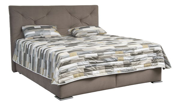 Posteľ je čalúnená látkou.