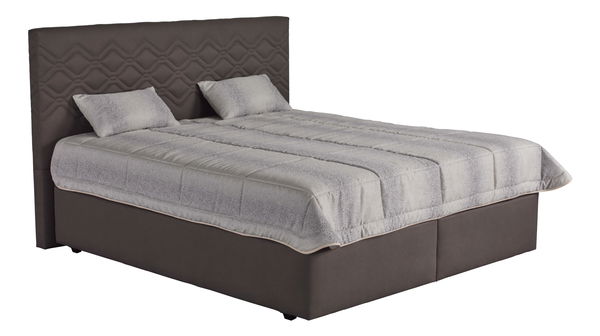 Krásna manželská posteľ moderného dizajnu s vysokým čelom a vysokou ložnou plochou. Prešívanie na čele postele vytvára jemný elegantný vzor. Vyššia ložná plocha určite poteší seniorov. K posteli je dodávaný lamelový rošt s polohovaním hlavy a nôh. Súčasťou postele je aj odvetrávaný úložný priestor s prístupom od nôh. Poslúži na uskladnenie posteľnej bielizne, oblečenia a iných doplnkov. V cene postele je zahrnutá aj denná deka a vankúše (2 ks.).