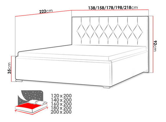 ZobraziťČalúnená posteľ je ideálnou voľbou pre tých, ktorí hľadajú pohodlie a štýl. Charakteristickým prvkom postele Colzone Tap je ozdobné čelo. Zdobí ju prešívanie, ktoré vytvára elegantný diamantový vzor. Vizuálny efekt dopĺňajú gombíky vo farbe čalúnenia. Strieborné nohy sú ďalším dekoratívnym akcentom. Prezentovaná čalúnená posteľ Tap je navyše vybavená rámom a veľkým úložným priestorom. Otváranie a používanie úložného priestoru uľahčuje špeciálny plynový pohon. Posteľ je dostupná v štandardných rozmeroch, nejde však o voľne stojaci model. Dostupné rozmery : 120 : dĺžka: 222 cm, šírka: 138 cm, výška: 92 cm, plocha na spanie: 120 x 200 cm, 140 : dĺžka: 222 cm, šírka: 158 cm, výška: 92 cm, plocha na spanie: 140 x 200 cm, 160 : dĺžka: 222 cm, šírka: 178 cm, výška: 92 cm, plocha na spanie: 160 x 200 cm, 180 : dĺžka: 222 cm, šírka: 198 cm, výška: 92 cm, plocha na spanie: 180 x 200 cm, 200 : dĺžka: 222 cm, šírka: 218 cm, výška: 92 cm, plocha na spanie: 200 x 200 cm Prevedenie : rám: 16 mm laminovaná doska + 6 cm borovicové drevo, operadlo: 16 mm surová doska + borovicové drevo + pena T25, posteľ nie je voľne stojaca, má úložný priestor, systém, ktorý uľahčuje otváranie, oceľové nohy, maximálna nosnosť na 1 lôžko je 120 kg, posteľ nemá matrac Záruka : 24 mesiacov