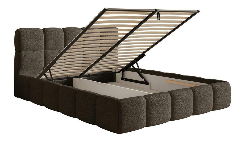 ZobraziťHľadáte dokonalú posteľ, ktorá splní vaše najvyššie očakávania z hľadiska pohodlia, štýlu a funkčnosti? Predstavujeme vám čalúnenú posteľ - kus nábytku, ktorý bude plne vyhvať vašim potrebám Čalúnená posteľ je dokonalým spojením funkčnosti a moderného dizajnu, ktorý dodá vašej spálni eleganciu a štýl! Táto posteľ, navrhnutá s ohľadom na pohodlie a estetiku, určite upúta vašu pozornosť. Štýlové čelo postele je navrhnuté tak, aby dokonale ladilo so zaoblenými hranatými tvarmi podnože. Táto ucelená kompozícia dodáva posteli eleganciu a harmóniu. Oblé tvary celej konštrukcie zdôrazňujú moderný charakter nábytku, vďaka čomu je skutočnou ozdobou interiéru. kovový rám roštu, na ktorom spočíva matrac, poskytuje pevnú oporu a odolnosť. Vďaka tomu môžete pokojne spať s vedomím, že posteľ je stabilná a odolná. Jednou z hlavných vlastností, ktorými sa posteľ vyznačuje, sú plynové pohony. Vďaka nim má posteľ flexibilný a hladký systém zdvíhania matraca, ktorý umožňuje pohodlný a jednoduchý prístup k úložnému priestoru. Ide o ideálne riešenie pre tých, ktorí chcú maximálne využiť priestor vo svojej spálni. Ďalšou výhodou postele je výber dvoch rôznych látok v rôznych farbách. Môžete si vybrať zo širokej škály farieb a textúr, ktoré sa prispôsobia vášmu individuálnemu štýlu a výzdobe spálne Vyberte si posteľ a užite si pohodlie, eleganciu a funkčnosť Detaily produktu: čalúnená opierka hlavy so štýlovými zaoblenými štvorcami, zadná časť opierky hlavy je čalúnená čiernou podšívkou, plocha na spanie: 180x200 cm, kovový rám roštu vrátane, obmedzovač posuvu rámu zaisťujúci bezpečné používanie, rám má 34 lamiel - husté usporiadanie priečok výrazne zvyšuje komfort pri používaní postele, dvojkomorový úložný priestor na lôžko pokrývajúci celú plochu na spanie, výška spacej plochy: 35 cm, nábytok je čalúnený látkou Legend 07 v hnedej farbe, Legend je absolútnou legendou vo svete textilu. Jeho jedinečné vlastnosti ho robia mimoriadne žiadaným medzi milovníkmi luxusných povrchových úprav a kvalitných materiálov. Je vyrobený z boucle tkaniny, ktorá má charakteristickú štruktúru, ktorá pripomína jemné slučky. Práve tieto slučky vytvárajú jedinečný vzhľad a jemné nuansy, ktoré dodávajú tkanine jedinečný charakter. Hustá väzba látky Legend zaručuje jej výnimočnú trvácnosť a odolnosť pri každodennom používaní. Vďaka tomu si môžete byť istí, že látka si aj pri intenzívnom používaní zachová svoj krásny vzhľad po mnoho rokov. Model je dostupný v šírkach: 140 cm, 160 cm a 180 cm.