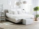 Výška matraca zobrazeného na obrázku je 20 cm. Odporúčame použiť matrac s podobnou výškou., Pre najlepší výkon polohovateľného rámu odporúčame použiť penový matrac, ktorý sa ľahko prispôsobí pohyblivému rámu. Najlepšie je, ak hrúbka nepresahuje 30 cm, aby bol matrac dostatočne pružný a prispôsobil sa rámu postele. Pri polohovateľných posteliach sa neodporúča používať pružinový matrac, pretože sa nebude ohýbať spolu s rámom a mohlo by dôjsť k jeho poškodeniu.
