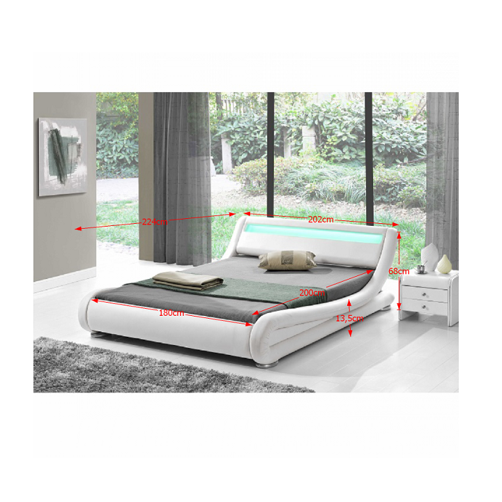 Elegantná manželská posteľ v tvare vlny, ktorá dodáva tejto posteli svoju jedinečnosť a modernosť. Čelo postele tvorí zabudované RGB LED osvetlenie. Posteľ je čalúnená v ekokoži, ktorá je nenáročná na údržbu a pôsobí pôvabne a zároveň elegantne. V cene postele je aj lamelový rošt.