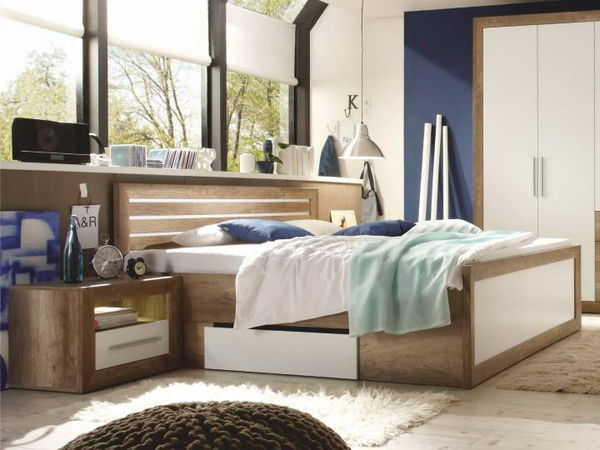 Moderná manželská posteľ ukrýva v dolnom priestore úložný priestor, ktorý sa otvára vďaka 2 zásuvkám. Elegancia tejto posteli dopĺňajú dva nočné stolíky s LED bielym osvetlením. Posteľ je dodávaná bez matraca a roštu. Z našej širokej ponuky si môžete priobjednať rošt a matrac o rozmere 180 x 200 cm.