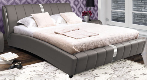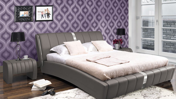 Luxusná manželská posteľ s moderným dizajnom skvele oživí priestor Vašej spálne. Je vyrobená z šedej ekokože. Na čelách má ozdobný pás striebornej farby. Plocha lôžka je 180 x 200 cm.