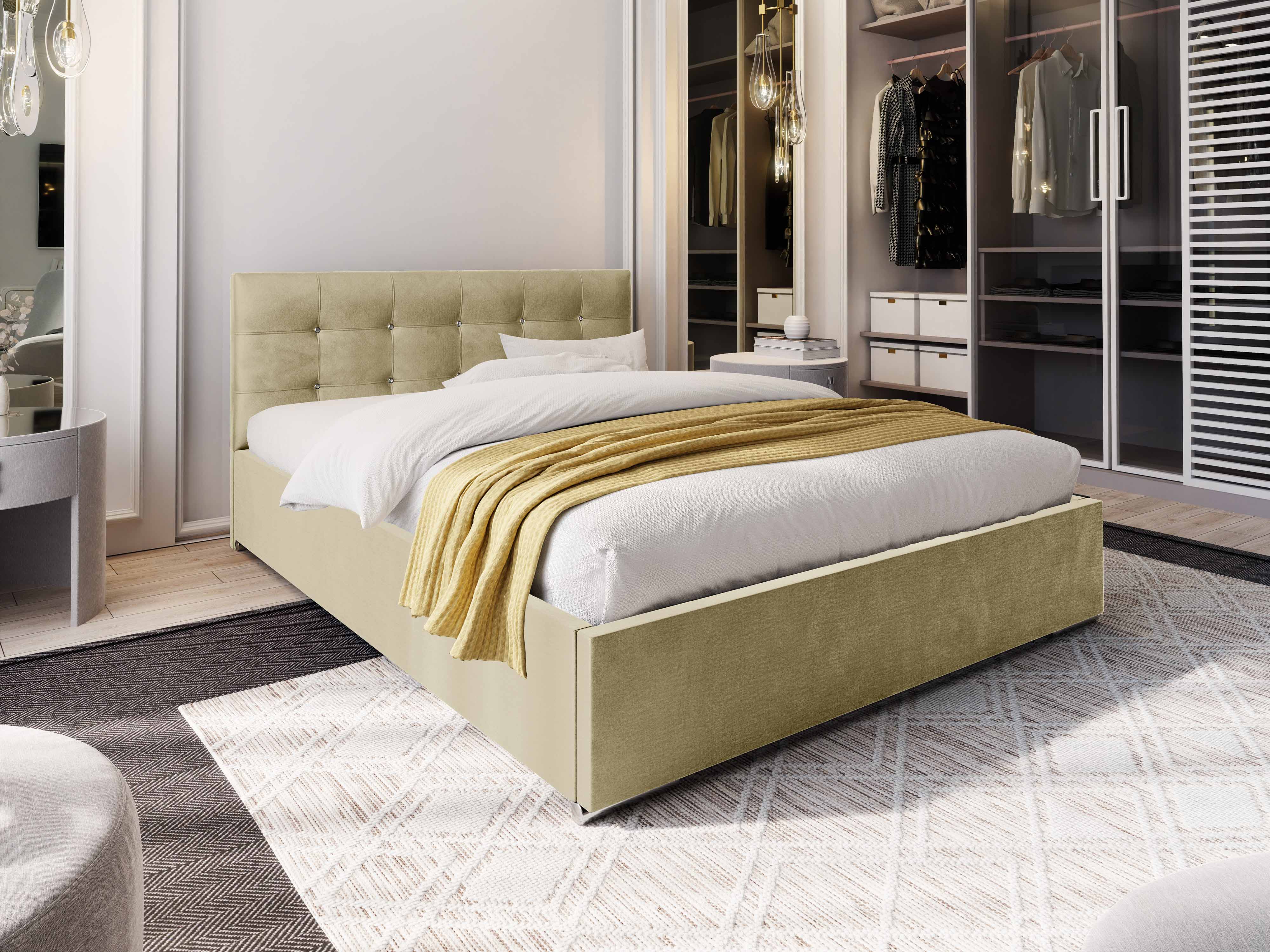Manželská posteľ 180 cm Lonnie (béžová) (s roštom a úložným priestorom)