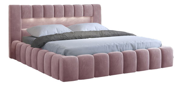 Manželská posteľ 180 cm Luxa (ružová) s roštom, úložným priestorom a LED osvetlením vám poskytne štýlový a luxusný pocit pohodlia. Táto posteľ má vysoké čelo so zabudovaným LED osvetlením, čo vám umožní čítať vašu obľúbenú knihu priamo v posteli. Je čalúnená kvalitnou látkou v ružovej farbe so vzhľadom zamatu a má dekoračné prešívanie. Posteľ obsahuje výklopný kovový rošt s otváraním od nôh a úložný priestor rozdelený na dve časti, ktorý vám poskytne dostatok priestoru na uskladnenie vašej posteľnej bielizne, diek alebo sezónnych vecí. Výška postele bez čela je 30 cm a výška nožičiek je 1 cm. Posteľ je dodávaná bez matraca, avšak v našom e-shope si môžete vybrať ten správny z našej ponuky.