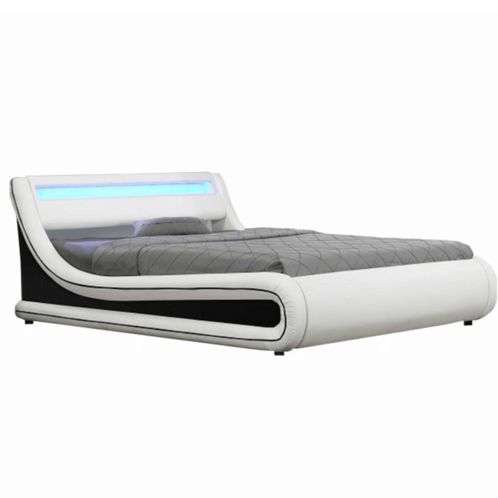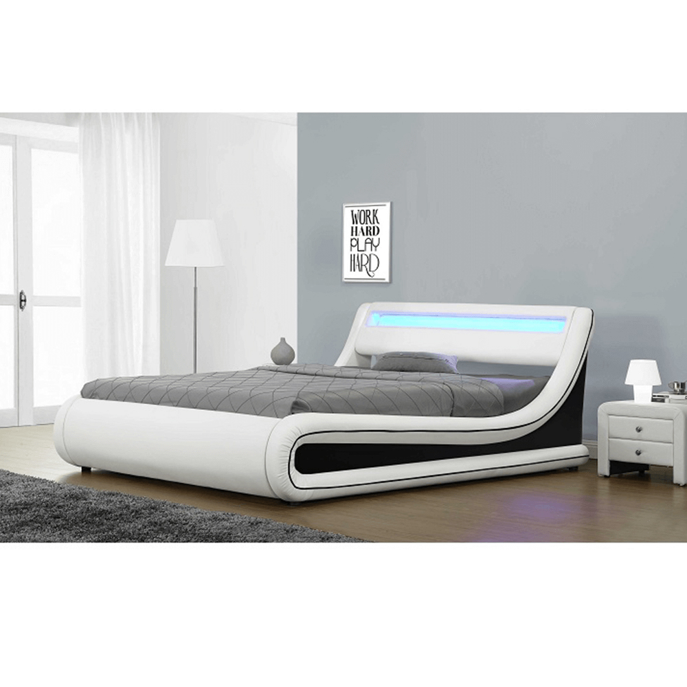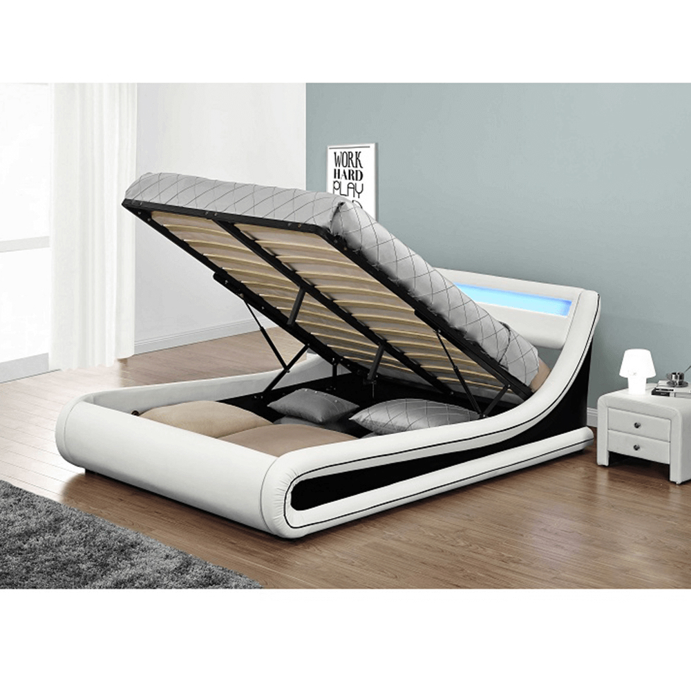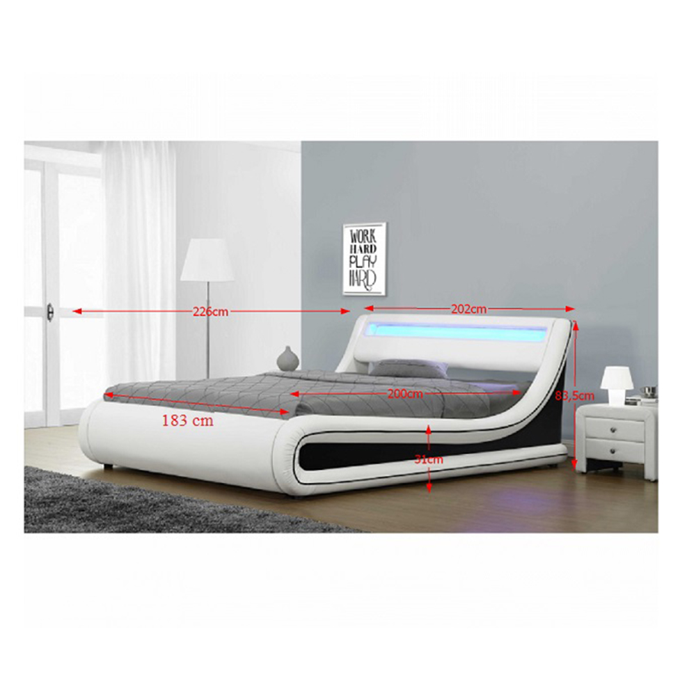 Manželská posteľ 180 cm Milda (s roštom, úložným priestorom a LED osvetlením) je moderná a praktická posteľ s výklopným roštom, ktorý zaručuje pohodlie počas spánku. Posteľ má tiež úložný priestor, kde môžete uložiť veci a ušetriť tak miesto v izbe. RGB LED osvetlenie pridáva priestoru harmóniu a pohodlie. Čalúnenie v zaujímavej čierno-bielej ekokoži dodáva posteli štýlový a elegantný vzhľad. Posteľ je vybavená lamelovým roštom s výškou 31 cm a ložnou plochou 183 x 200 cm. Nosnosť posteľe je 110 kg. Posteľ je dodávaná v demonte a bez matraca. Odporúčame zakúpiť atypický matrac s rozmerom 183x200 cm, ktorý si môžete objednať z nášho internetového obchodu. Rozmery posteľe sú 202x226x83,5 cm a je k dispozícii v bielo-čiernej farbe. Oderuodolnosť textílie podľa testu Martindale dosahuje 100 000 oderov.
