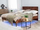 Táto posteľ v rustikálnom štýle bude štýlovým stredobodom každej modernej spálne alebo spálne inšpirovanej boho štýlom. Posteľ má pevný rám z drevotrieskovej dosky v tmavohnedej farbe, veľké čelo a pevné nohy vyrobené z prírodného kaučukového dreva. LED osvetlenie, ktoré je súčasťou postele, vylepší vzhľad vašej spálne a vnesie do nej moderný nádych. Urobte zo svojej spálne miesto, kde sa budete cítiť príjemne a pohodlne.