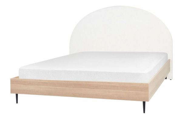 Ak hľadáte štýlovú a pohodlnú posteľ, tento kúsok je pre vás ideálnou voľbou. Vďaka odolnému rámu z MDF, čiernym kovovým nohám a pevnému drevenému roštu bude vyzerať skvele dlhé roky. Čalúnené polkruhové čelo postele umocňuje jej elegantný a zároveň útulný dizajn, ktorý sa hodí do spální ladených v modernom i tradičnom štýle.