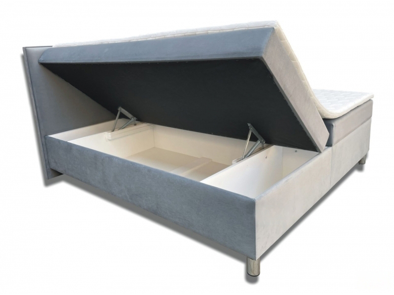 Manželská posteľ Moissa o veľkosti 180x200 cm v tmavosivej farbe s praktickým úložným priestorom a bočným otváraním je dokonalým kúskom pre Váš domov. Elegantný potiahnutím látkou Trinity a moderný dizajn dodávajú posteli štýlový vzhľad. Súčasťou postele je matrac s pružinovým jadrom, ktorý ponúka pohodlný spánok. Materiál DTD vo fabre biela očalúnená látkou a tkanina Trinity sú kvalitné a odolné. Tento produkt má nosnosť 100 kg a výšku od zeme po hornú hranu korpusu 110 cm.