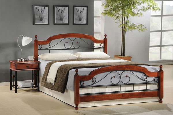 Masívna a elegantná posteľ Montana od značky Signal Vás zaujme retro štýlom jej rámu z dreva s kovovými prvkami. posteľ je vyrobená z dreva vo farbe antickej čerešne, kovové prvky sú v čiernom podaní.