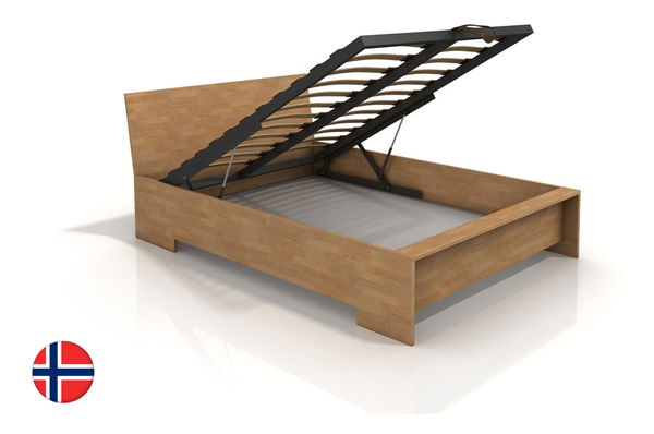 Posteľ Lekanger High BC je elegantná drevená posteľ s úložným priestorom. Buková posteľ je teda vhodná aj do menších bytov, pretože na uloženie vecí môžete využívať priestor pod posteľou. Model Lekanger High BC je o pár centimetrov vyšší ako štandardný model a tak sa vám bude z postele jednoduchšie vstávať. Hlavová opierka je jemne naklonená a tak si môžete spraviť pohodlie aj keď v posteli sedíte.Posteľ Lekanger High vám bude slúžiť niekoľko rokov, pretože všetky časti postele sú pospájané skrutkami, ktoré zabezpečujú pevnosť konštrukcie. V strede postele sa nachádza nosník nazývaný "piata noha", ktorý podopiera strednú časť postele. Tento nosník má tvar "T" a vodorovná časť je upevnená k prednej a zadnej časti postele zatiaľ čo zvislá časť podopiera celok. Zosilnenie konštrukcie a podporu matraca zabezpečuje drevený rošt.Posteľ Lekanger High je vyrobená z pozdĺžne lepených dosiek a najmenším možným počtom uzlov na vonkajšej strane. Bukové drevo je ošetrená dvoma vrstvami laku, takže je odolné voči poškriabaniu. Laky a moridlá majú potrebné certifikáty a atesty.