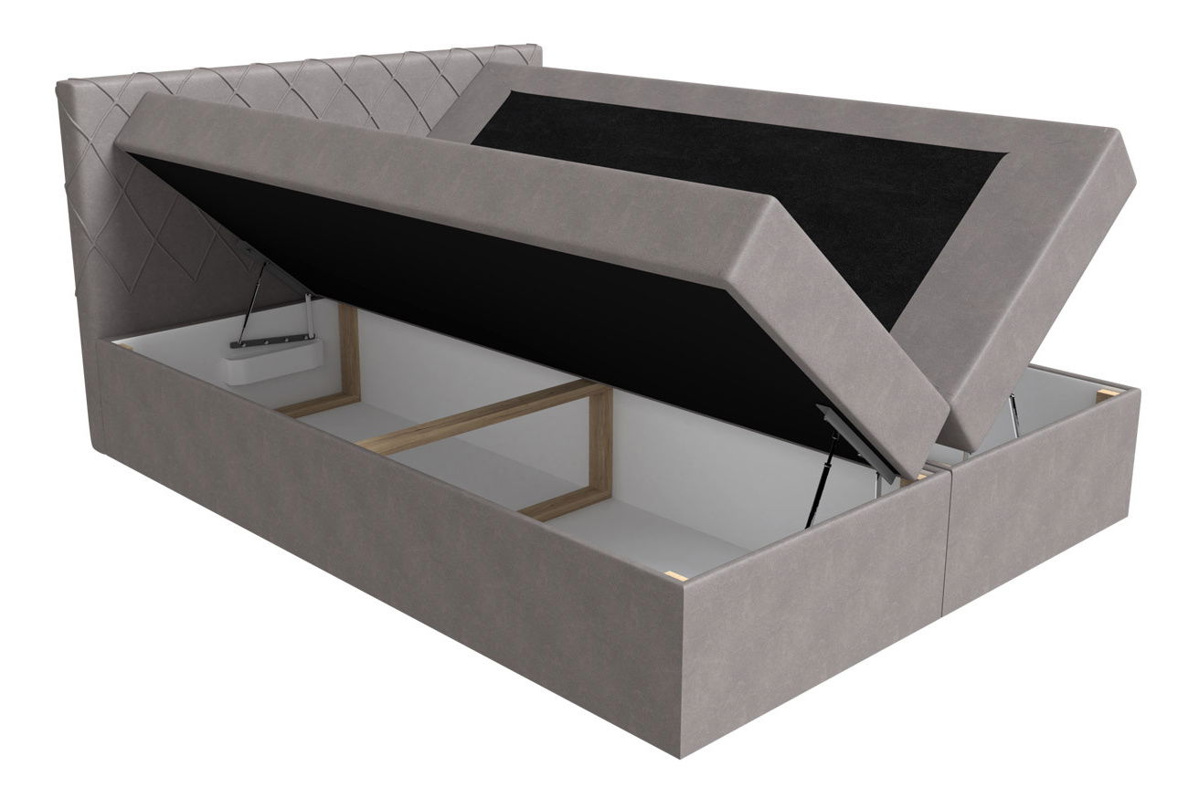 má dva kontajnery na posteľnú bielizeň - posteľ s dvoma nádobami na posteľnú bielizeň ako štandard, na oboch stranách postele, zdvíhanie obidvoch častí vďaka pružinám, čo robí obsluhu veľmi jednoduchou a ľahkou,
