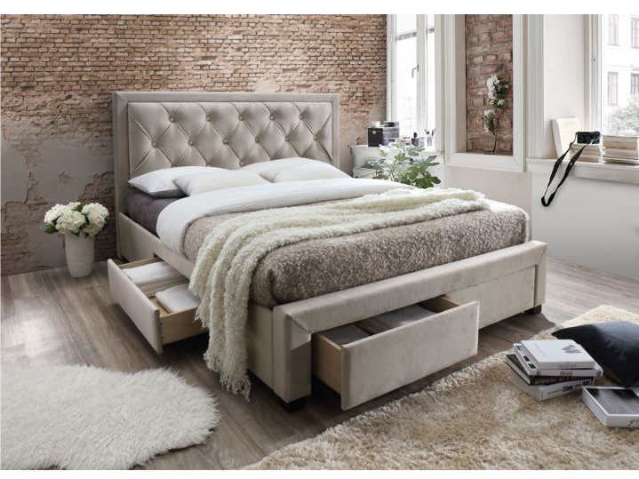 Luxusná a elegantná manželská posteľ ukrýva praktický úložný priestor. Posteľ je v sivohnedej látke a jej dominantný prvok čelo je prešívané. Nohy sú vo farbe wenge. Posteľ je dodávaná spolu s rolovaným roštom, ale bez matraca. Ten si môžete priobjednať z nášho e-shopu.