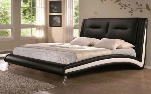 Elegantná posteľ originálneho vzhľadu s vysokým čelom je vhodná do modernej spálne. Konštrukcia je z kvalitného prírodného dreva, čalúnená ekokožou čiernej farby v kombinácii s bielou. V prednej časti sú chromové nožičky. Nosnosť postele je 200 kg, záťaž postele je cca 100 kg na každej strane postele.