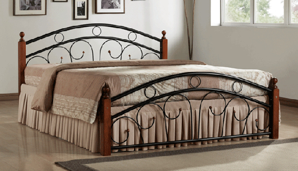 Elegantná posteľ v klasickom štýle so zaujímavou kombináciou dreva a kovu. Kvalitné masivné drevo je vo farebnom prevedení antická čerešňa. Rám je kovový, tak ako aj originálne mreže čiernej farby na prednom a zadnom čele postele. Pozdĺžne drevené lamely sú vsadené do kovového rámu. Rošt je cca 33-34 cm nad zemou. Výška čela pri hlave je 95,2 cm a pri nohách 52 cm.