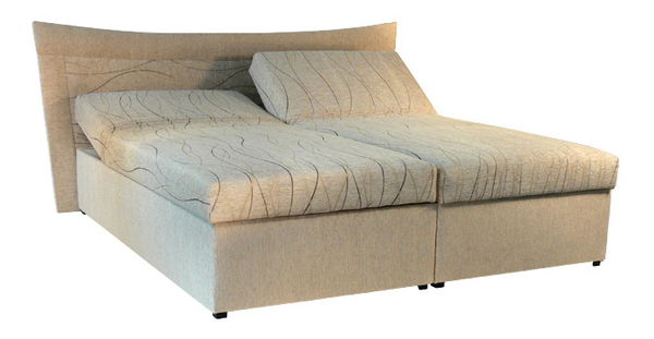 Príjemná čalúnená manželská posteľ, ktorá vyniká zaujímavo navrhnutým čelom, ktoré osloví svojím neobvyklým zaoblením. Úložný priestor je maximálne praktický, stačí jednoducho vyklopiť matrace od nôh. Korpus manželskej postele je z pevnej drevotrieskovej dosky a úložný priestor je odvetraný a v strede spevnený. Čalúnené matrace sú nevyberateľné a s korpusom postele sú spojené kovaním, ktoré umožňuje pohodlný prístup k úložnému priestoru. Posteľ je dodávaná so sendvičovým matracom s nosnosťou 110 kg.