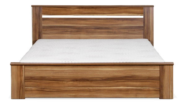 Elegantná manželská posteľ s vysokým čelom dodávaná bez roštu a bez matraca. Posteľ je vyrobená z DTD a je v prevedení slivka. Posteľ je vybavená dvomi zásuvkami na kolieskach, ktoré sa nachádzajú po stranách.