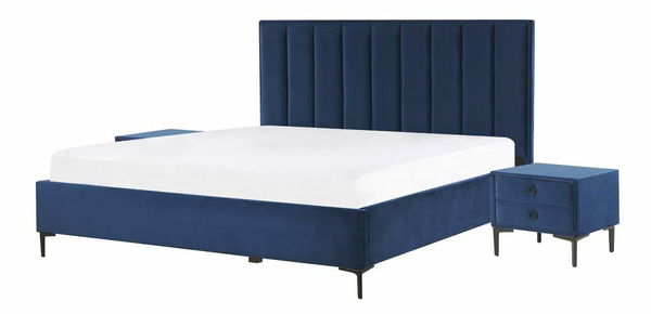 Táto krásna súprava spálňového nábytku pozostávajúca z postele a dvoch nočných stolíkov je dokonalou ozdobou každej spálne. Vďaka klasickým tvarom a nádhernému čalúneniu sa stane skutočným stredobodom každého priestoru. Posteľ má pevný a odolný rám pokrytý vysokokvalitnou zamatovou látkou, ktorá svojím krásnym odleskom dodáva posteli luxusný vzhľad. Pod zdvíhacím roštom je veľký úložný priestor, ktorý vám pomôže s usporiadaním priestoru v spálni. Súprava sa dodáva s nočnými stolíkmi, vďaka ktorým budete mať všetky potrebné veci vždy poruke.
