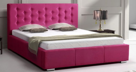 Luxusná manželská posteľ spraví z Vašej spálne moderný priestor. Je čalúnená kvalitným šenilom cyklamenovej farby. Plocha lôžka je 180 x 200 cm. Je dodávaná bez roštu a matraca. Tie si môžete vybrať a priobjednať z ponuky nášho internetového obchodu.