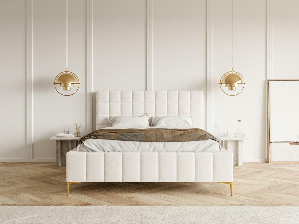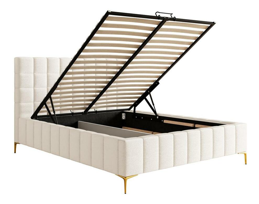 Manželská posteľ 180 cm Sheldona 180 (s roštom) (s úl. priestorom) (krémová + zlatá)