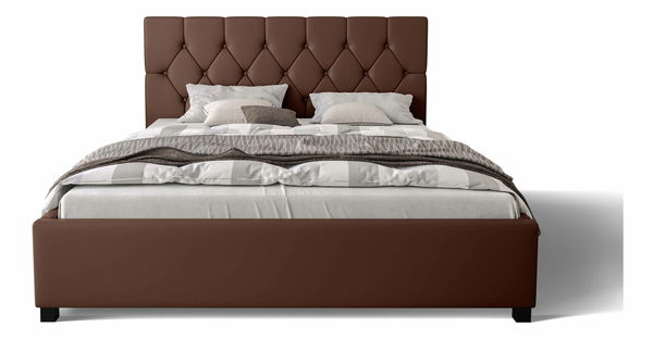 ZobraziťManželská posteľ Sylvie s výškou 115 cm a dĺžkou 210 cm v hnedej farbe je vyrobená z ekokože Sioux 1116. Posteľ má vysoké tvarované čelo a vnútri rošt a úložný priestor pre posteľnú bielizeň. Tkanina Sioux je vyrobená z polyesteru a bavlny a svojím vzhľadom pripomína prírodnú kožu. Test oderuvzdornosti Martindale dosahuje 45000 cyklov. Konštrukcia postele je z kombinácie drevotriesky a dreva, s maximálnym zaťažením 240 kg. Posteľ je dodávaná s roštom a matrac si môžete vybrať a priobjednať z nášho internetového obchodu. Posteľ má aj úložný priestor na posteľnú bielizeň s mechanizmom na otváranie. Rozmery balíka č. 1 sú 180x7x100 cm/16 kg, balík č. 2 má rozmery 202x37x20 cm/28 kg a balík č. 3 má rozmery.