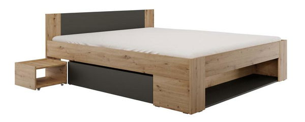 Moderné prevedenie dub artisan a antracit prináša do vašej spálne nadčasový dizajn spojený s praktickosťou. Vďaka kombinácii kvalitných materiálov odolných proti poškodeniu si môžete byť istí dlhou životnosťou nábytku.