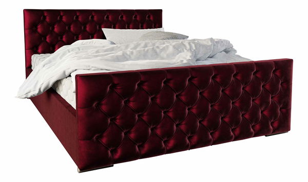 ZobraziťManželská posteľ 180 cm Velva (bordová) s roštom a úložným priestorom má elegantný dizajn s gombíkmi v tkanine na čele a prednej časti postele. Posteľ obsahuje rošt aj priestor na posteľnú bielizeň a je k dispozícii v niekoľkých farebných aj rozmerových variantoch. Tkanina Monolith 59 sa vyznačuje vysokou odolnosťou voči opotrebeniu. Konštrukcia rám je vyrobený z kombinácie drevotriesky a dreva. Posteľ nezahŕňa matrac, ale je vhodná pre matrace s výškou 10 cm a pružinou bonell. Úložný priestor na posteľnú bielizeň je vybavený mechanizmom na otváranie. Maximálne zaťaženie postele je 240 kg. Posteľ je dodávaná s roštom a je možné si pridať a vybrať matrac z internetového obchodu.