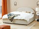 Zaoblené tvary a látkové čalúnenie s bohatou štruktúrou vytvárajú dizajn, ktorý je ideálny do spální zariadených v retro štýle. Posteľ je čalúnená látkou v svetlom odtieni béžovej farby, ktorá je príjemná na dotyk, ľahko sa udržiava a je trvácna. Vďaka zaoblenému čalúnenému čelu príjemne zútulní vašu spálňu. Posteľ má aj úložný priestor, ktorý je vhodný na odkladanie vankúšov alebo posteľných prikrývok.
