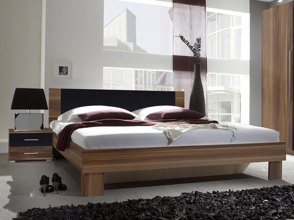 Manželská posteľ 180 cm Verwood Typ 52 (orech + čierna) (s noč. stolíkmi) *bazár
